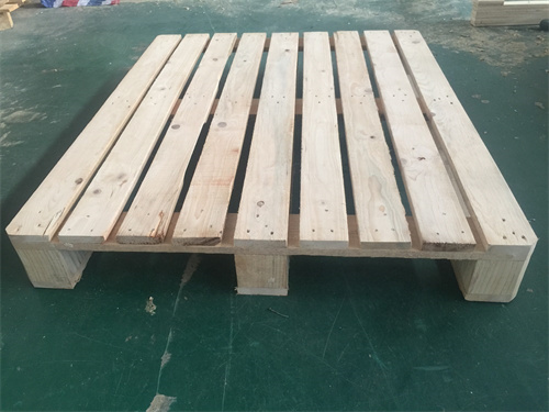 它是以原木为材料,进行枯燥定型处理,削减水分,消除内应力,然后进行切割、刨光、断头、抽边、砂光等精整加工处理而构成型材板块,选用具有防脱功用的射钉将型材板块装订成半成品托盘,之后进行精整、防滑处理和封蜡处理。依据货品品种、木制托盘载货质量及出口木托盘尺寸,合理确定出口木托盘上货品的码放方式。一般来说,木制托盘承载表面积的利用率应不低于80%。